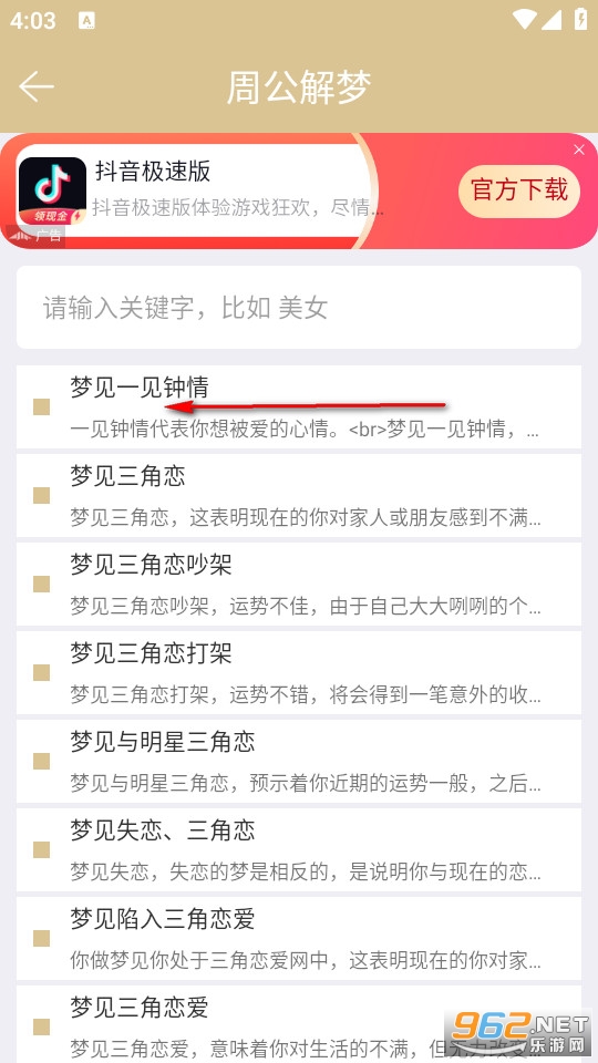 《周公解梦》是一款能够通过梦境来解析占卜的软件,软件中收录了各种类型的梦境,在软件内可以根据用户梦中遇到的场景进行查询相关的梦境,知晓梦境隐喻以及为了事情发展的走向分析,通过占卜来深挖内心深处的焦虑以及想法,用户可以将自己梦境内容进行具体描述后搜索查看相关解析,同时也能够通过星座查看你的运势。