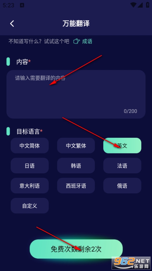 然后我们只需要输入需要翻译的内容以及需要翻译的外语就能够进行万能翻译了。