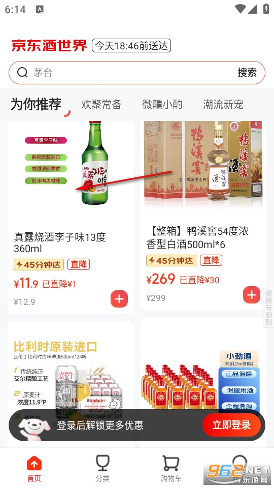 在京东酒世界下单,附近门店即刻配送,29分钟内极速送达(门店配货范围内,超出极速达订单配送时效,可按规则赔付)。