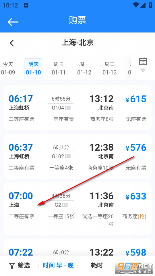 寻找到你所想要预订的车票,点击即可进行预订。
