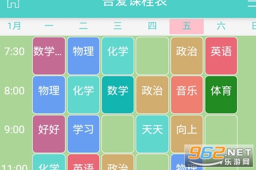 《吾爱课程表》是一款简单的私人制作课程表,软件简洁操作简单无广告,用户只需要根据每日的时间以及每个月什么时间段上什么课程一一记录在软件上即可,在软件中用户输入并保存以后用户的所有课程包括什么时间段该做什么事都会清晰的写在课程表上,非常清晰并且一目了然。