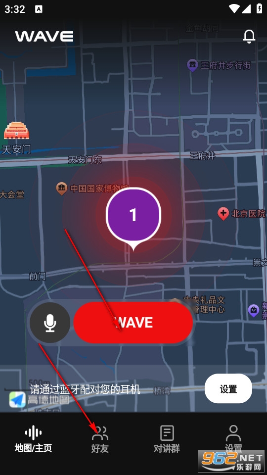 首先我们先在首页开启wave连接蓝牙,接下来点击下方好友。