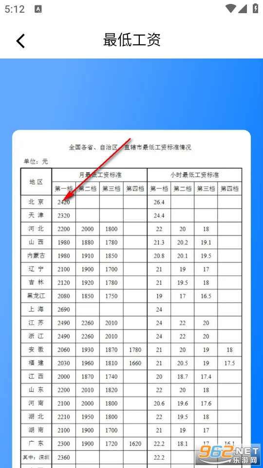 然后我们就能根据自己的城市来查看每个地区规划的最低工资标准。