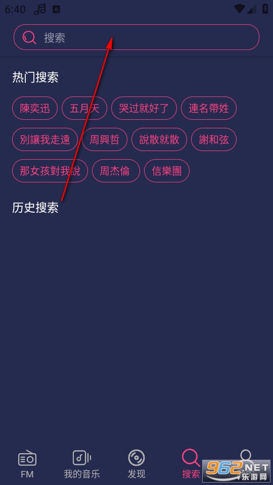 点击搜索栏搜索你需要听的歌曲。
