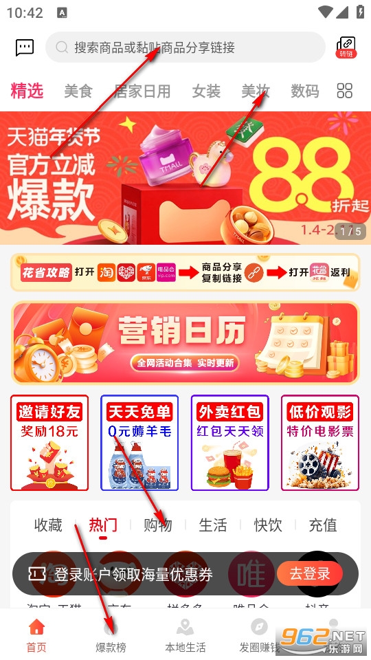 提供各大电商平台的优惠券,涵盖服装、美食、家居等多个品类,帮助用户以更低价格购物。