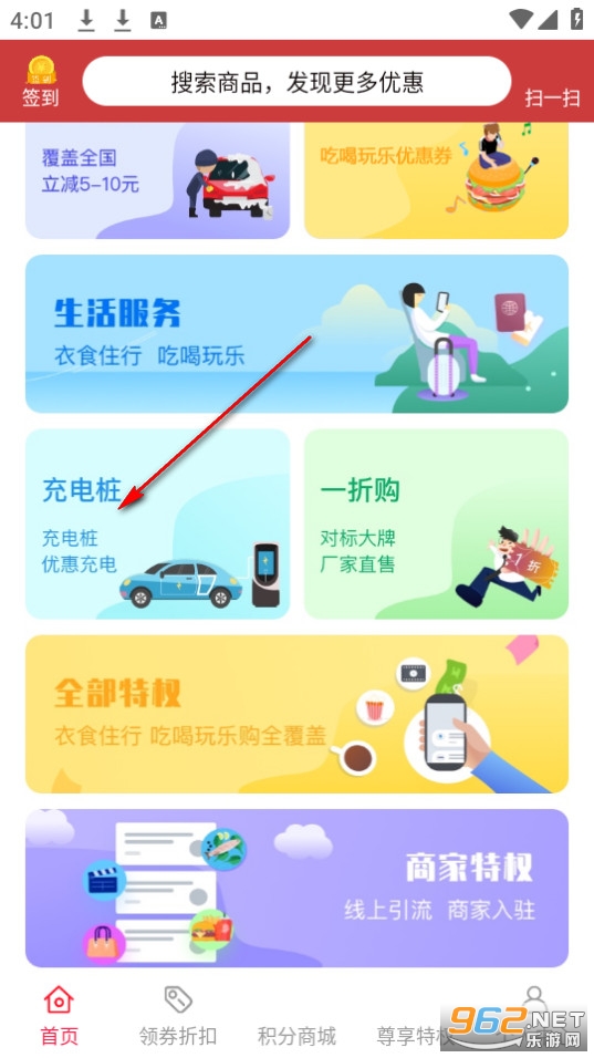 在首页找到充电桩一栏。