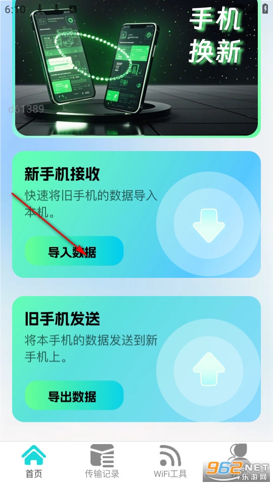 在首页点击新手机接收导入数据。