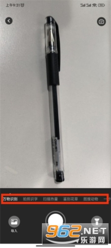 2、然后最准你要拍摄的物品,并选择你要识别的功能;