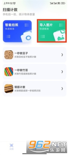 1、在3d扫描助手app中的计数页面中,点击上方的导入图片;