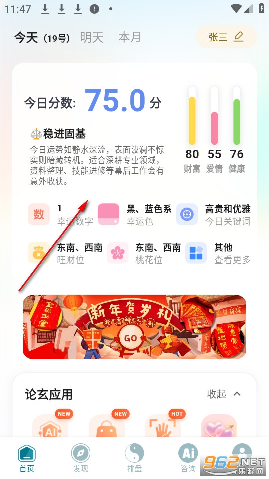 查看自己的今日运势。