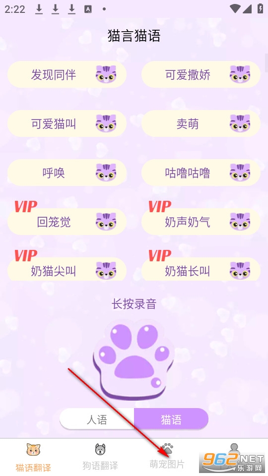 宠物语言翻译,能够为你将动物的叫声翻译成为自己需要的语言。