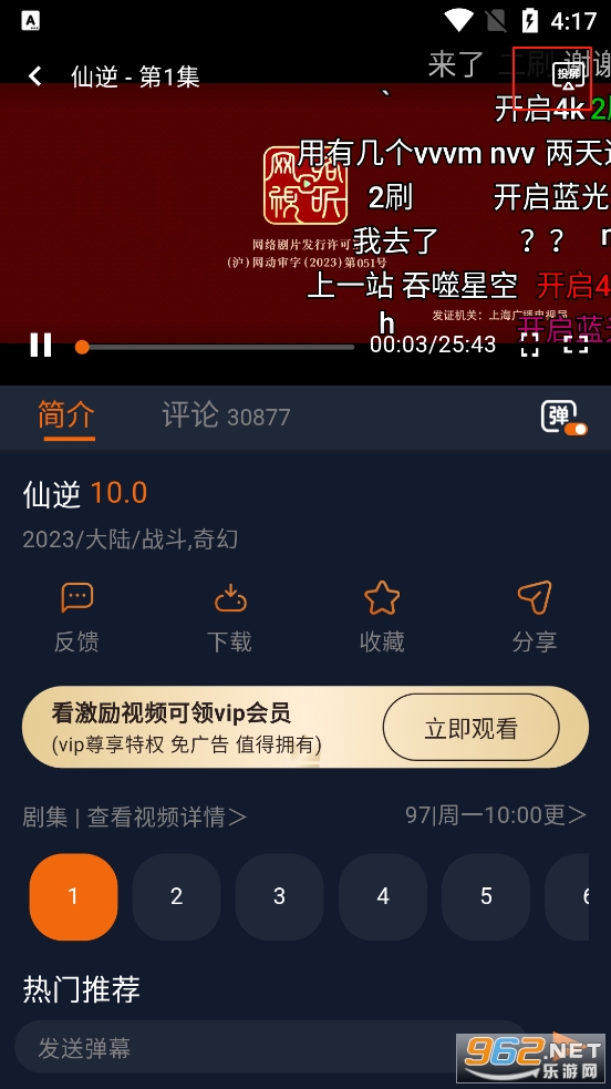 6、随后就可以开始追动漫了,当你想投屏的时候可以点击右上角的投屏