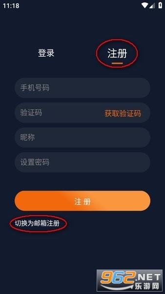 选择“注册”,默认为手机号注册,也可以“切换为邮箱注册”,填写相关信息,点击“注册”;