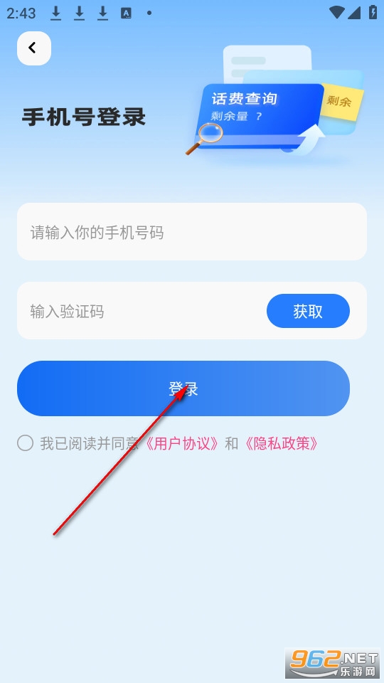输入手机号码和验证码后点击登录即可立即查询。