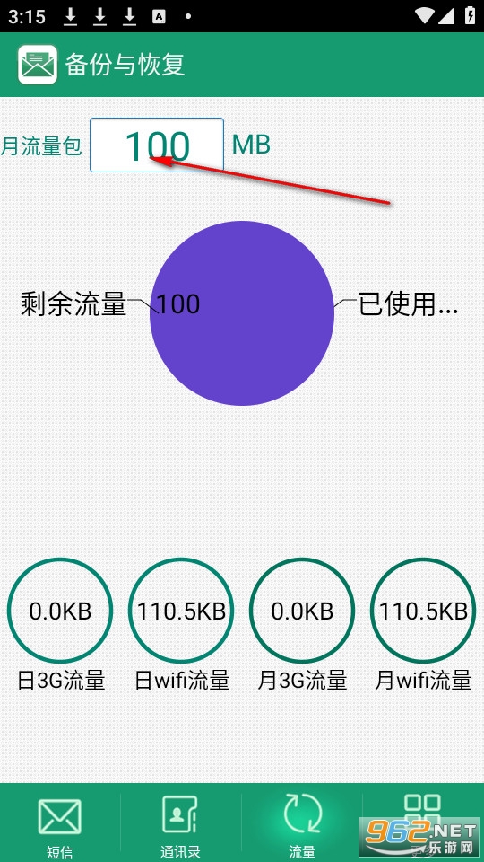 3.输入自己的总共使用流量,软件会为用户提供流量测算服务。