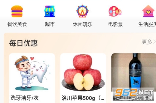 在首页可以查看各种分类功能以及生活服务每日优惠消费。