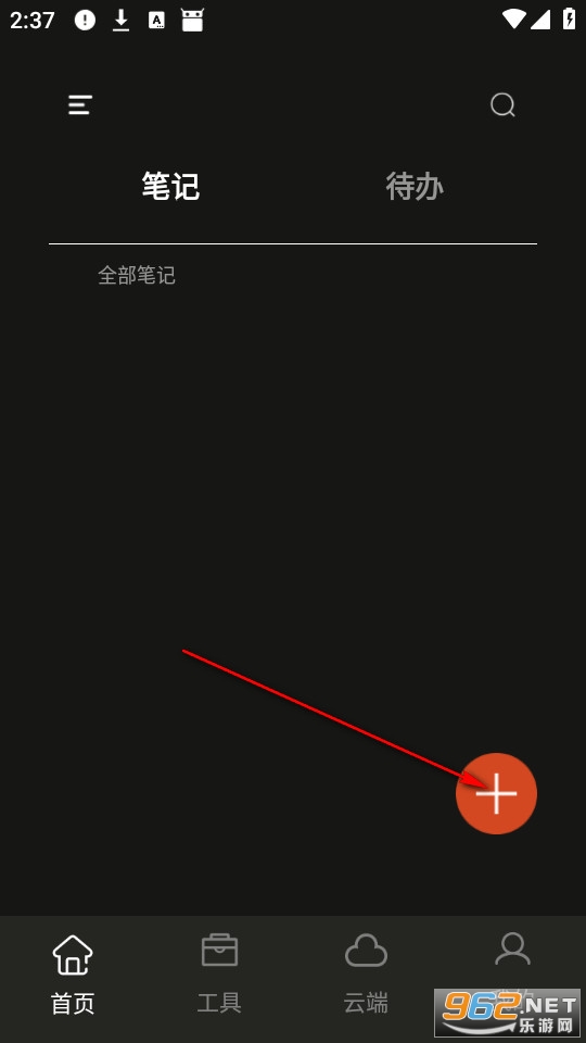 在首页能够查看自己的全部备忘笔记,点击右下角图标即可创建添加全新的笔记。