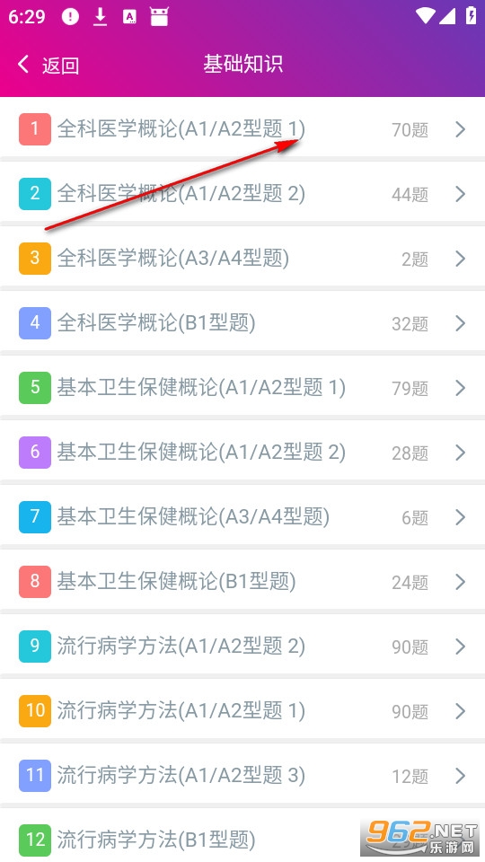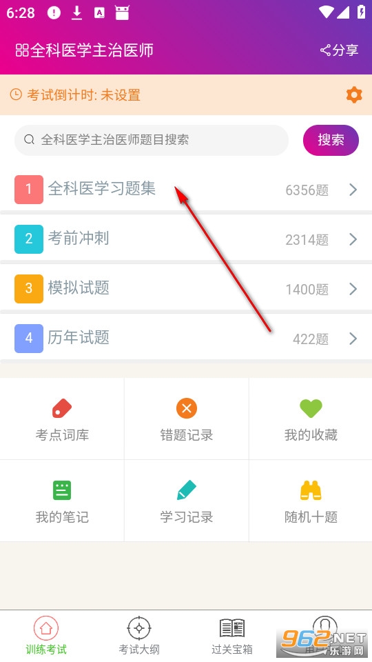 点击全科医学习题集。