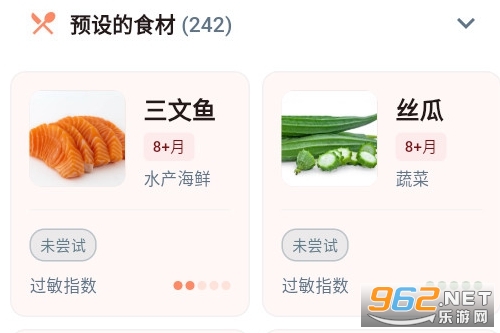 为用户提供了各类辅食的过敏风险等级,用户可以轻松掌握辅食的具体风险。
