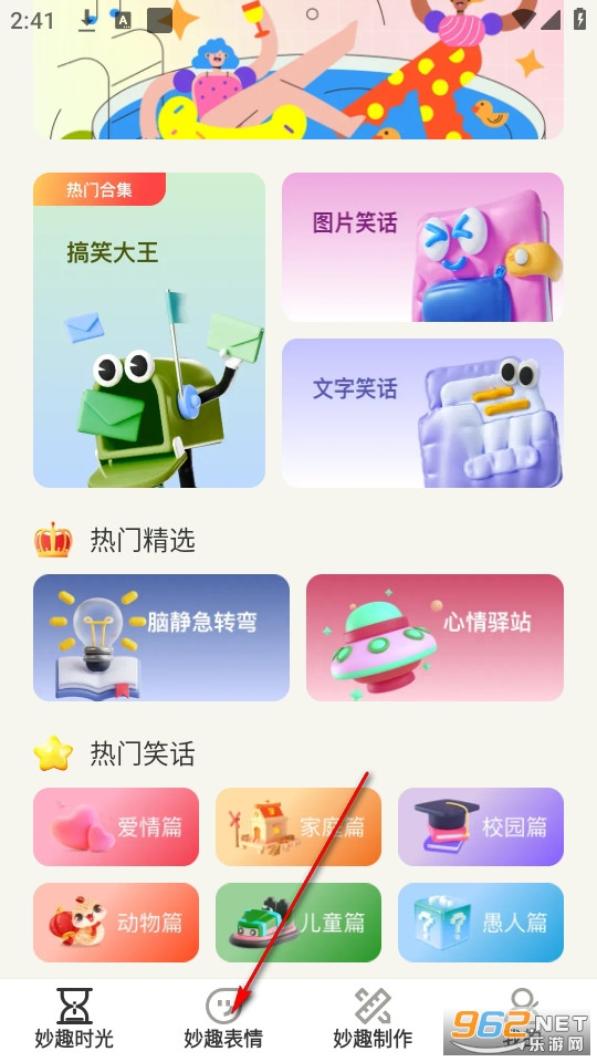 1、娱乐资源充足多样充满趣味,平台聚焦娱乐内容领域,供应搞笑图文、趣味动图、表情包、幽默段子等十大内容类型。