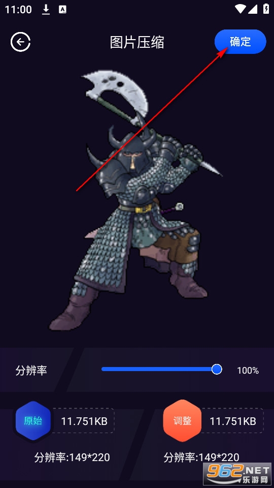 输入压缩大小后点击确定。
