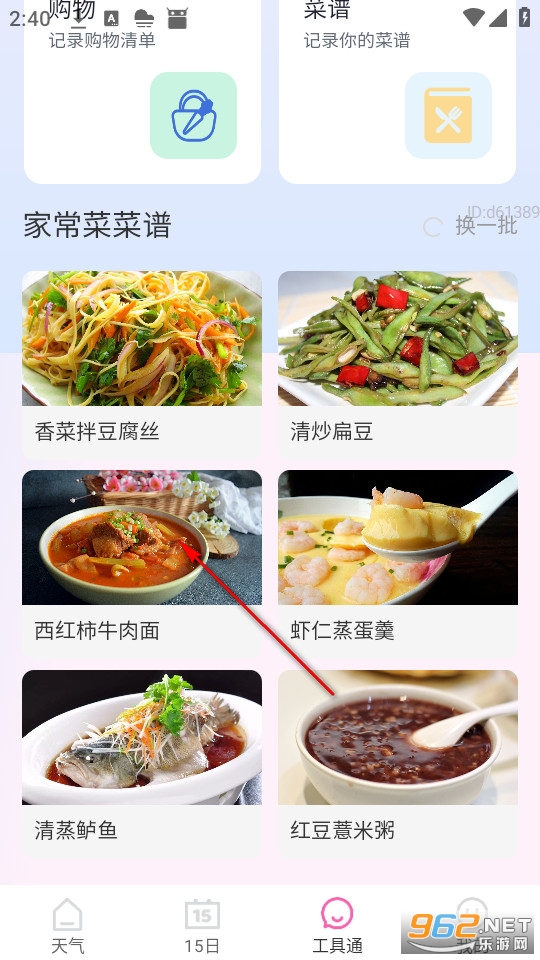 点击菜谱。