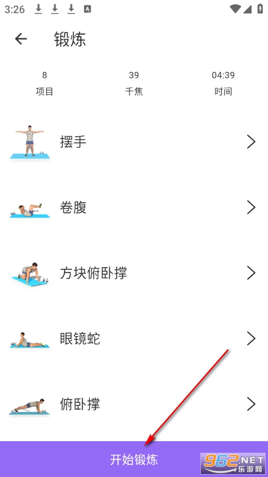 点击开始锻炼。