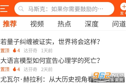 具有推荐、视频、热点、深度、问道等多元频道,供用户能够探索了解各种信息;
