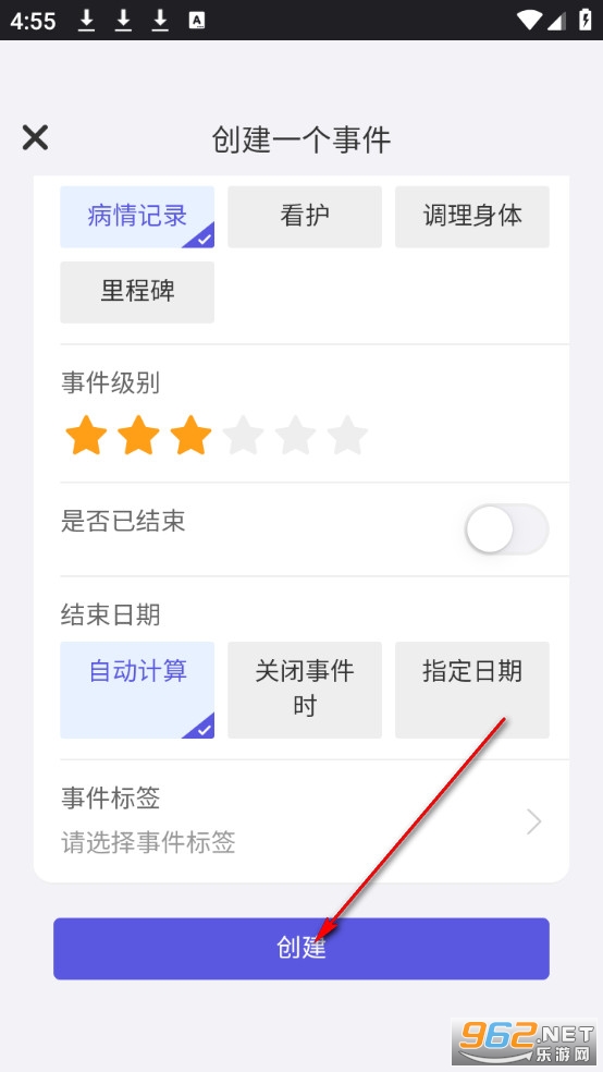 填写事件信息后点击下方创建。