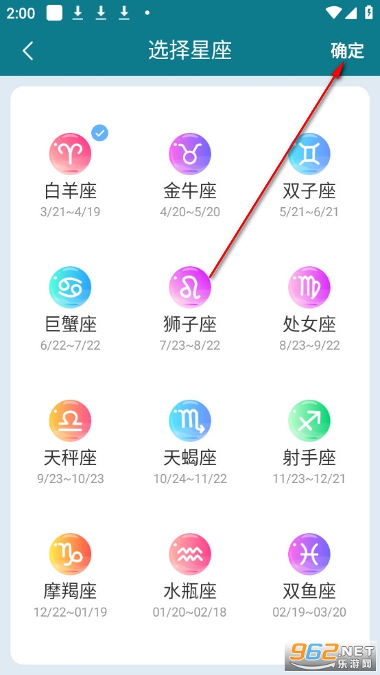 选择星座然后点击右上角确定。