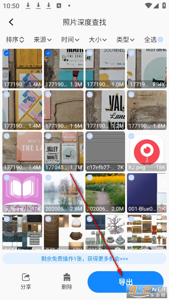 选择照片点击导出。