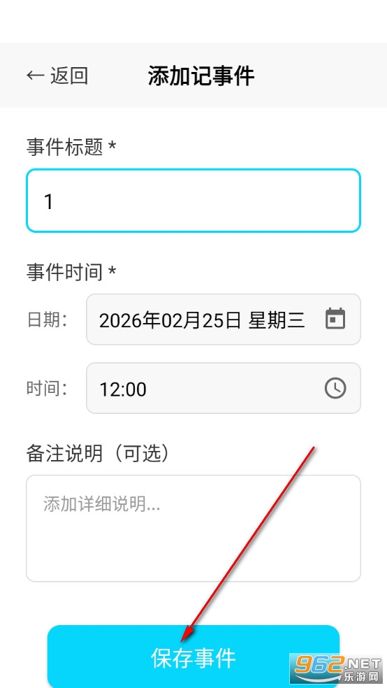 填写记事信息后点击下方保存事件。