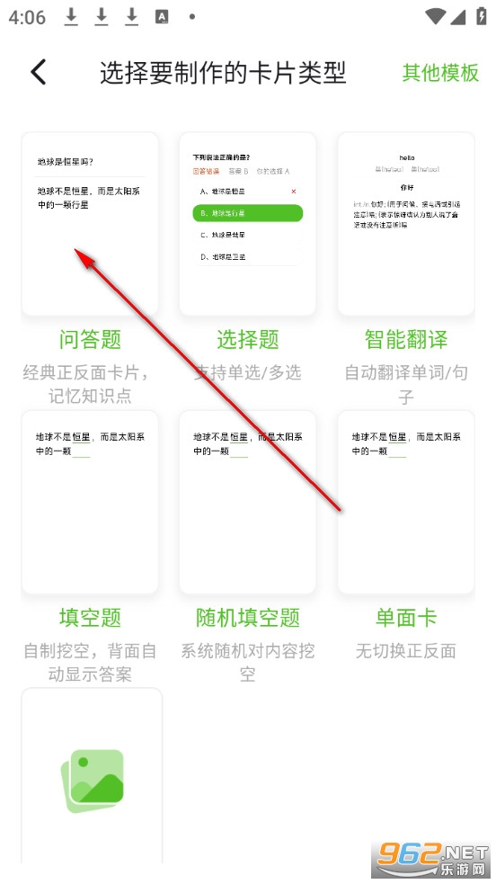 点击卡片类型模版。