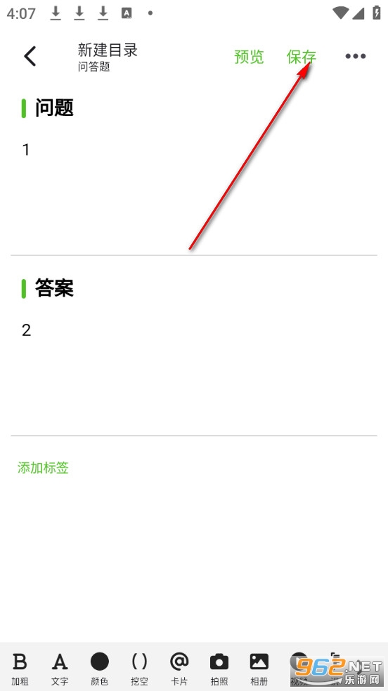 输入记忆卡片的问题、答案,点击右上角保存。