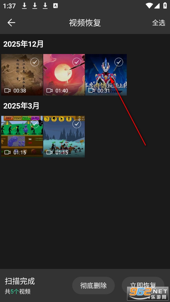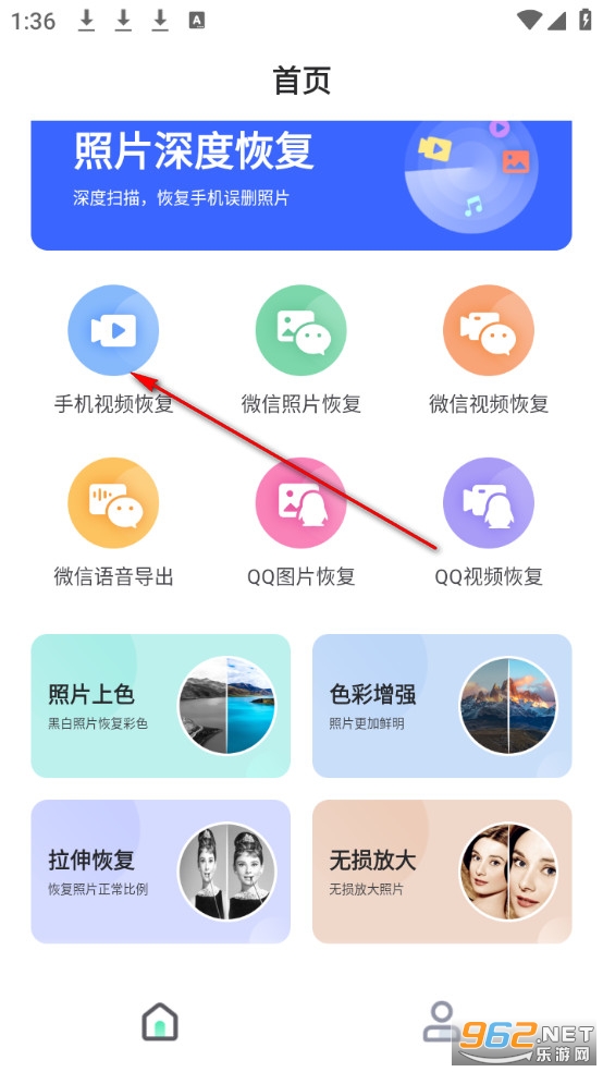 点击手机视频恢复。