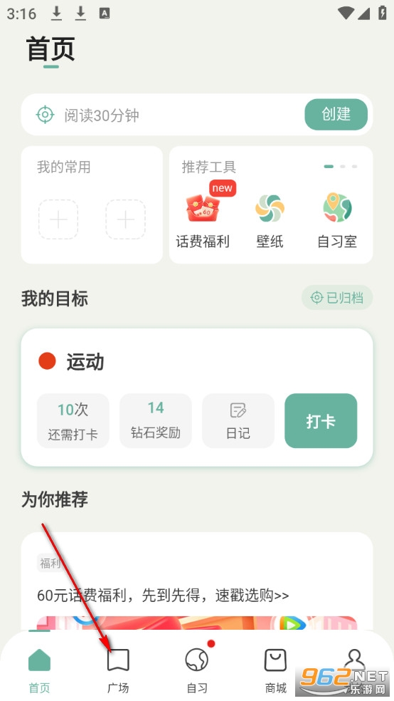 点击广场。