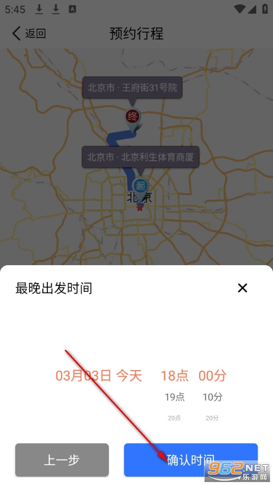 选择预约行程时间,点击确认时间。