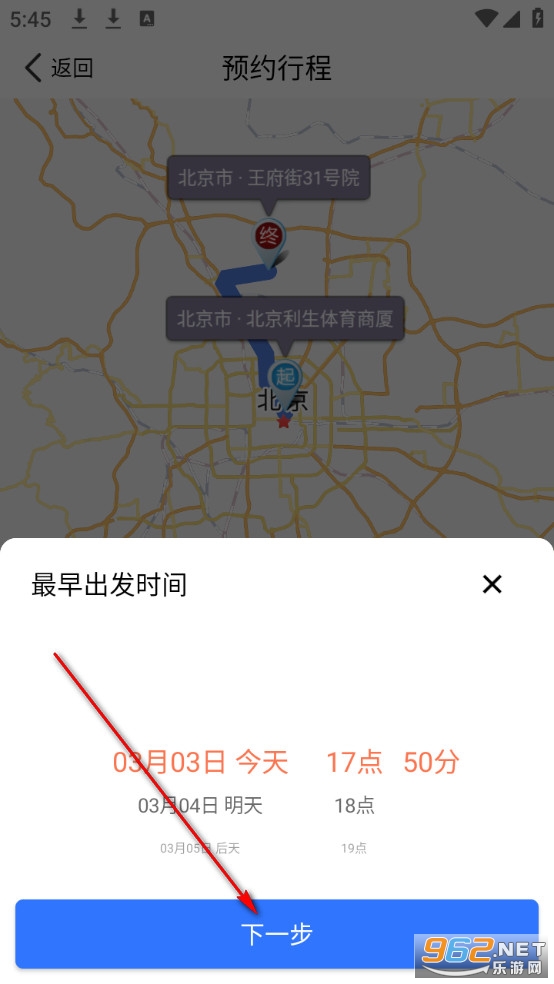 选择用车时间,点击下一步。