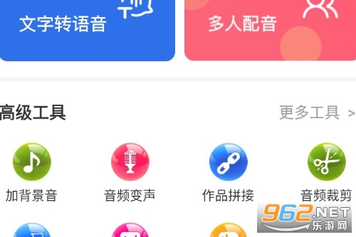 3、更多高级工具:音频修改、加背景音乐、音频变声、音频拼接、音频剪辑、格式转换、音频提取、音量调整。