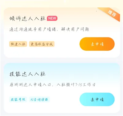 1.严格的入驻审核:平台对入驻流程有一定门槛要求,用户需完成实名认证,并通过技能考核及相关培训后方可签约成为达人,确保服务质量。