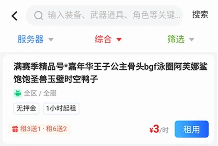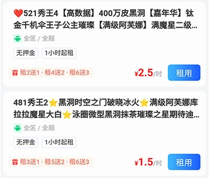 4.端游手游账号皆有,满足多样租号需求 。