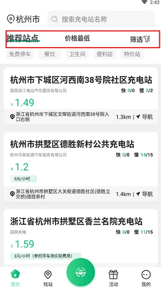 1.覆盖浙江全省充电桩数据,手机随时查位置、接口及空闲数量,导航前往。