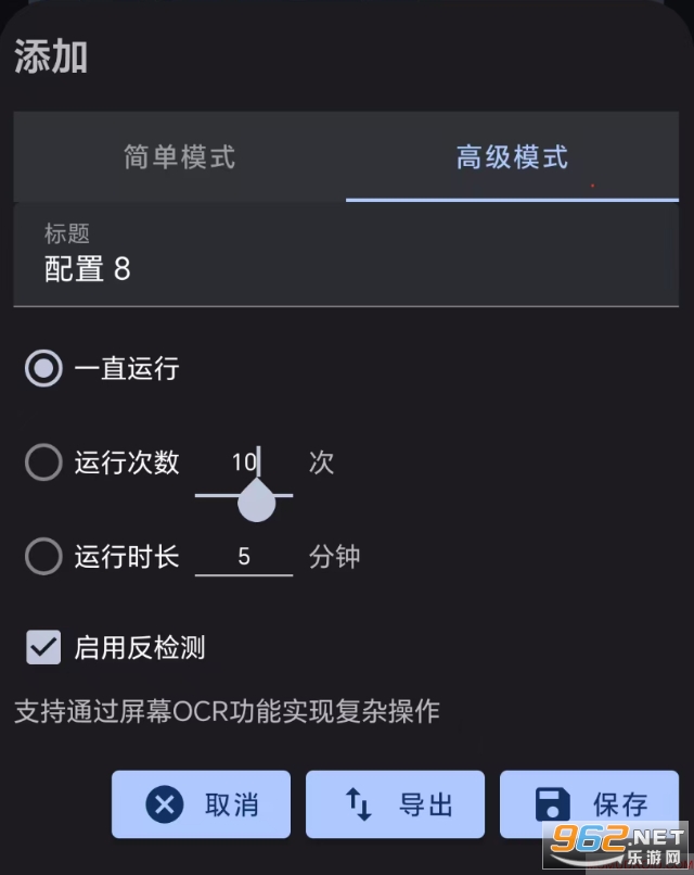 2、高级模式:支持OCR文本识别,根据识别结果执行自定义动作。