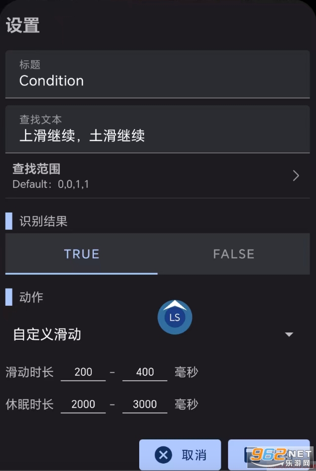 以刷剧出现“上滑继续”下一集时,自动模拟上滑操作为例,有时OCR会将“上”识别为“土”,此时可以将“上滑继续,土滑继续”作为判断条件,以实现容错。如下图: