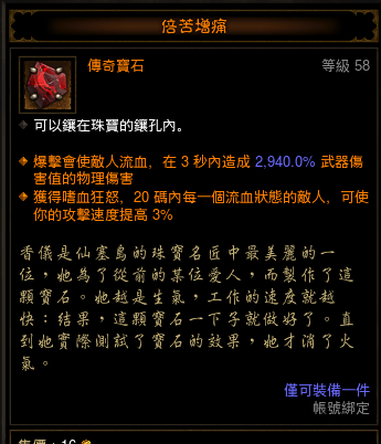 囚者宝石提供了d3里最强的独立增伤/毒效宝石是万金油dps宝石,高等级毒dot在塔套的加成下也变的非常的可观/当想觉得伤害够防御不足的时候,奥幻也是非常好的选择,而且塔拉夏翻倍抗性的加成下,收益也有提高。(近战BD合适点,远程BD都是被秒杀,意义不大)