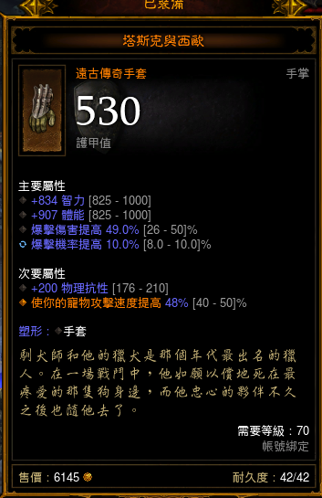 5主词缀的塔胸,是让火蛇上8档的关键之一。推荐属性:智力,体力,攻速,蛇伤,三孔,远程减伤。