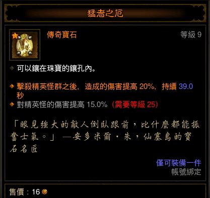 对戒流的精英伤几乎为0,所以萌者的收益其实非常的高,而且20伤害加成对清进度也有很大的影响/最大化远程对戒流伤害的宝石。