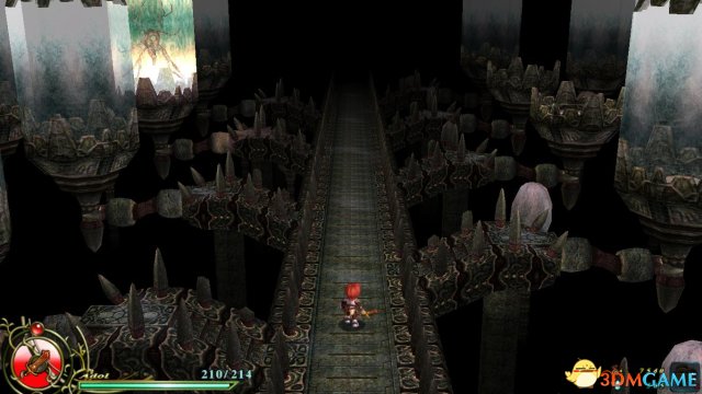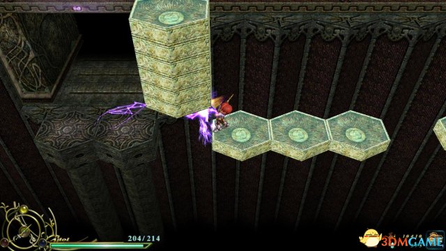 而中间的几个平台并不是说不能跳,而是要使用冲斩跳才能到达,最好的办法就是去到这个场景的东北部,北面可以看见一个入口和一个宝箱,但只能够绕路过去。