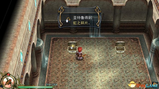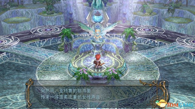 剧情:突然间,也特鲁的脑海里传来一阵温柔庄重的女性声音。她告诉亚特鲁她名叫“雅露玛”,她正是封印漆黑方舟的人,她会托付亚特鲁最后之键,她女神知道亚特鲁有着赤诚之心,被夺走的黑之键欲再度开启方舟之盖,正当她准备说出处理办法时,那把声音消失了。