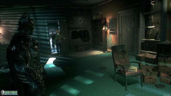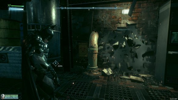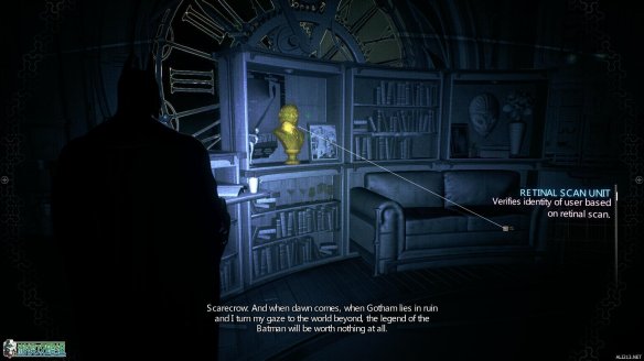 开门之后发现稻草人在里面等待着蝙蝠侠,不过这次被他施以诡计躲开了,并且还将蝙蝠侠困在了门里面。